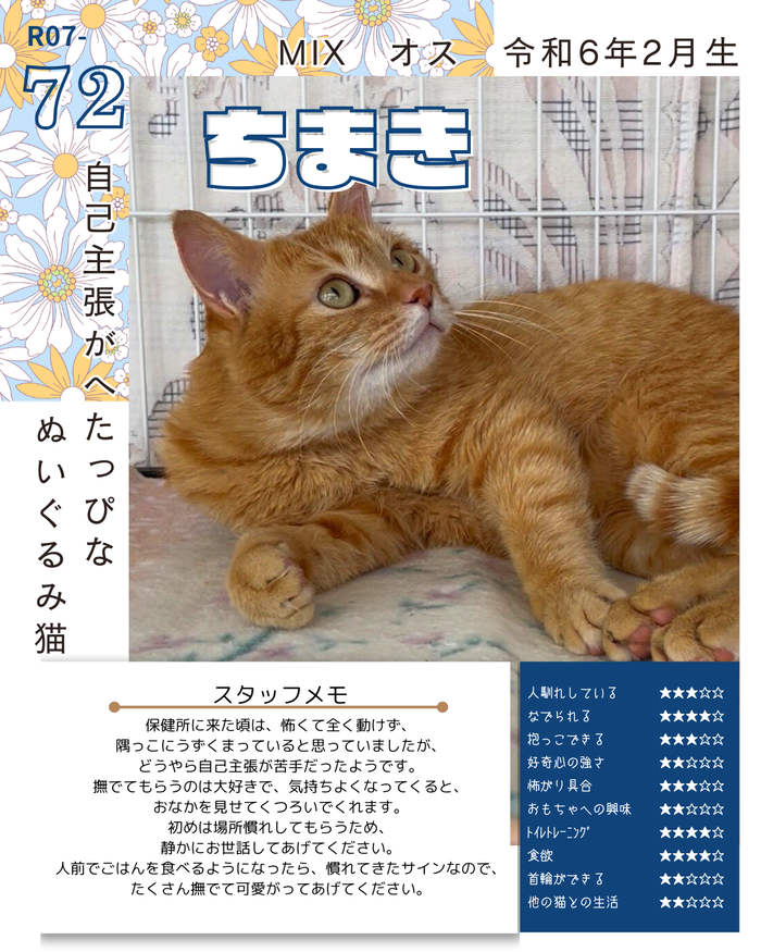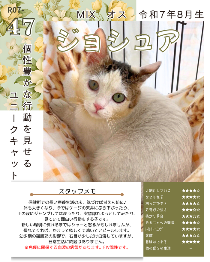 - 2026年3月10日新たに譲渡猫1頭の情報を掲載しました。