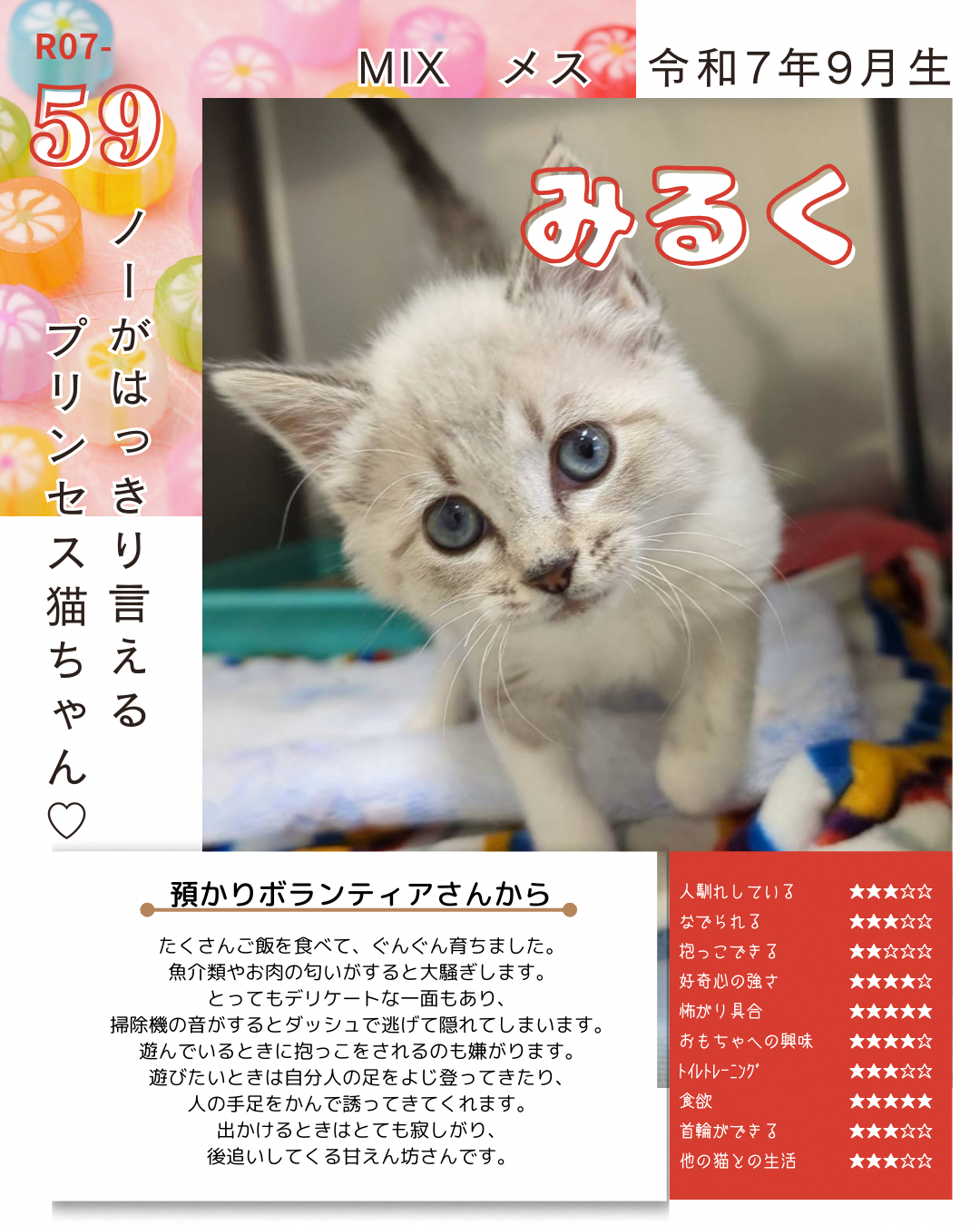 - 2025年11月28日新たに譲渡犬1頭と譲渡猫1頭の情報を掲載しました。